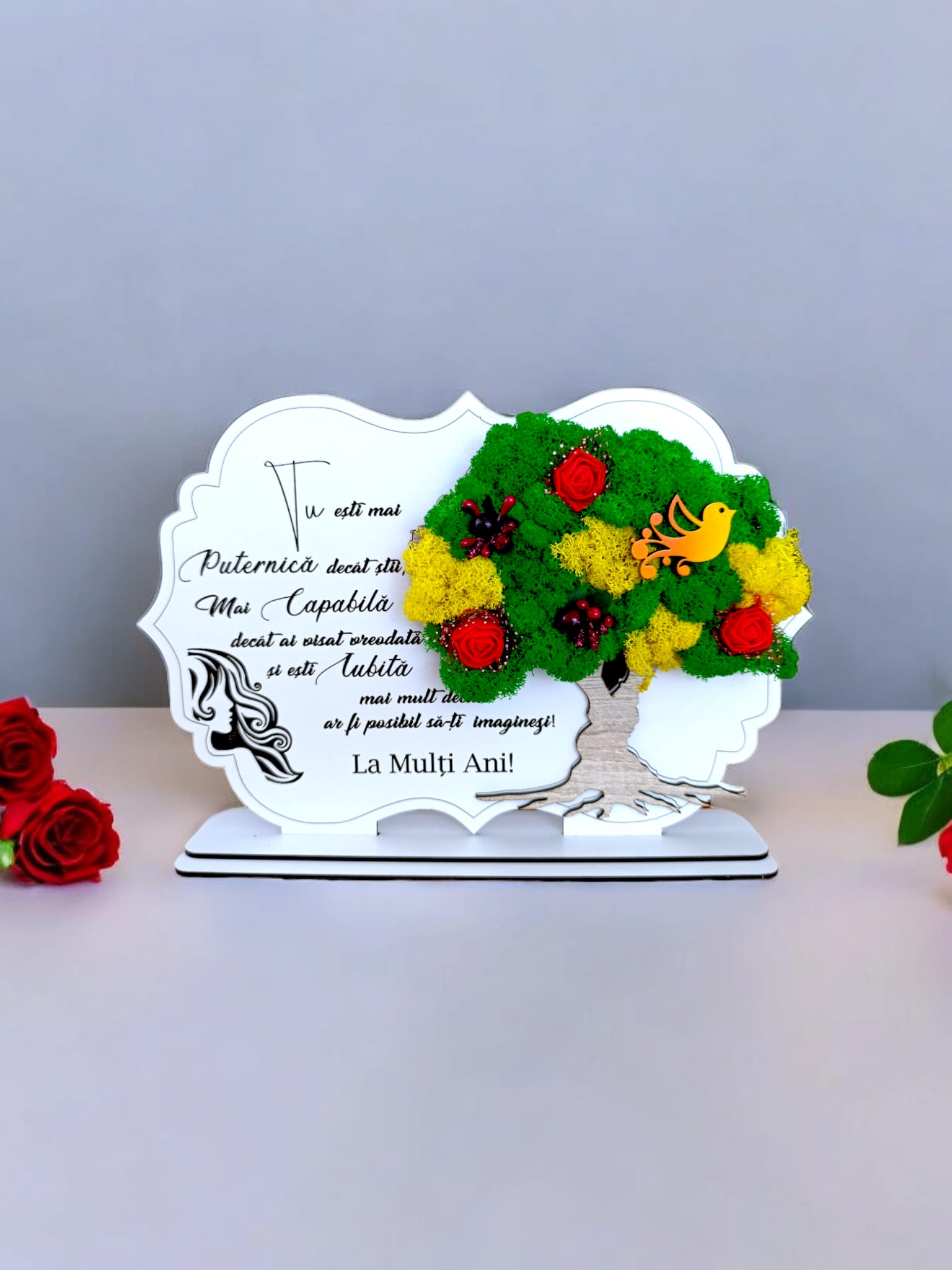 Tablou copac cu licheni stabilizati, personalizat cu mesaj standard, cadou pentru sotie, iubita, prietena dimensiune 30x20cm