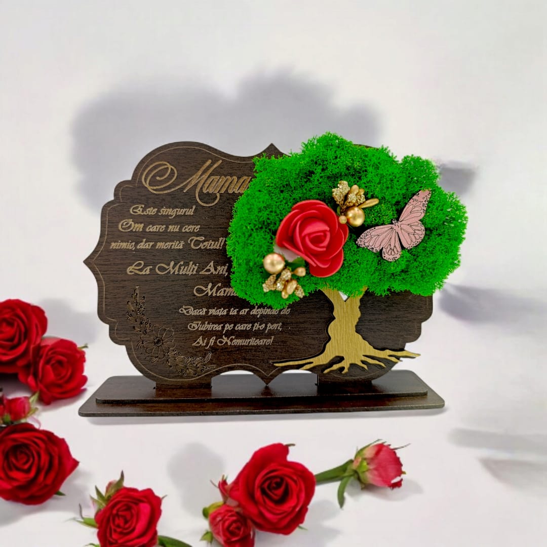 Tablou copac cu licheni stabilizati, cadou personalizat cu mesaj standard pentru Mama "Mama este singurul om care nu cere nimic..." Produs în România de Rustic Wood Decor