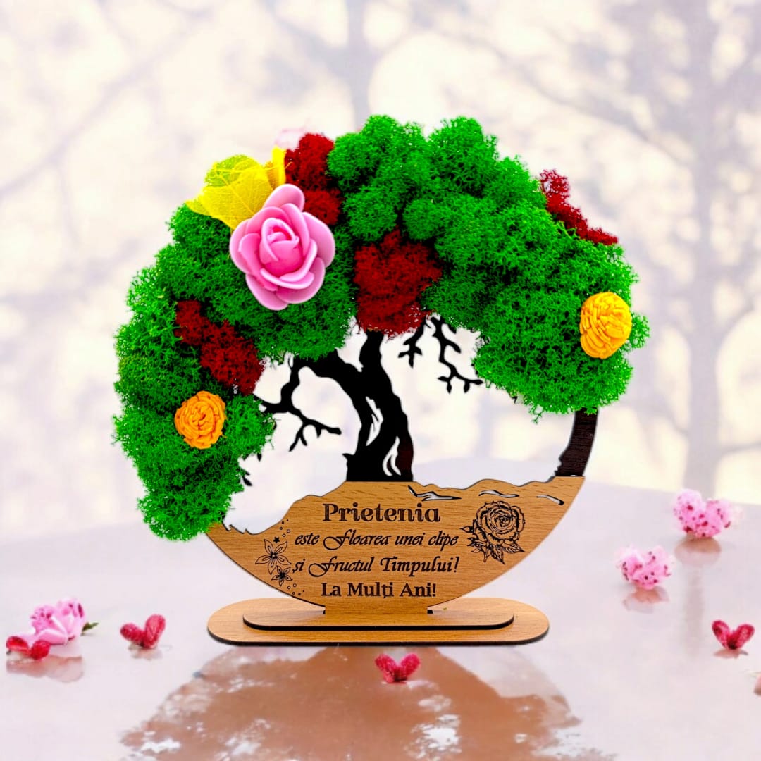 Tablou Copacul Vietii Cadou personalizat cu mesaj standard pentru Prieteni/Sotie/Fini/Familie/Nasi ”Prietenia este...”,decorat cu licheni stabilizati Produs în România de Rustic Wood Decor