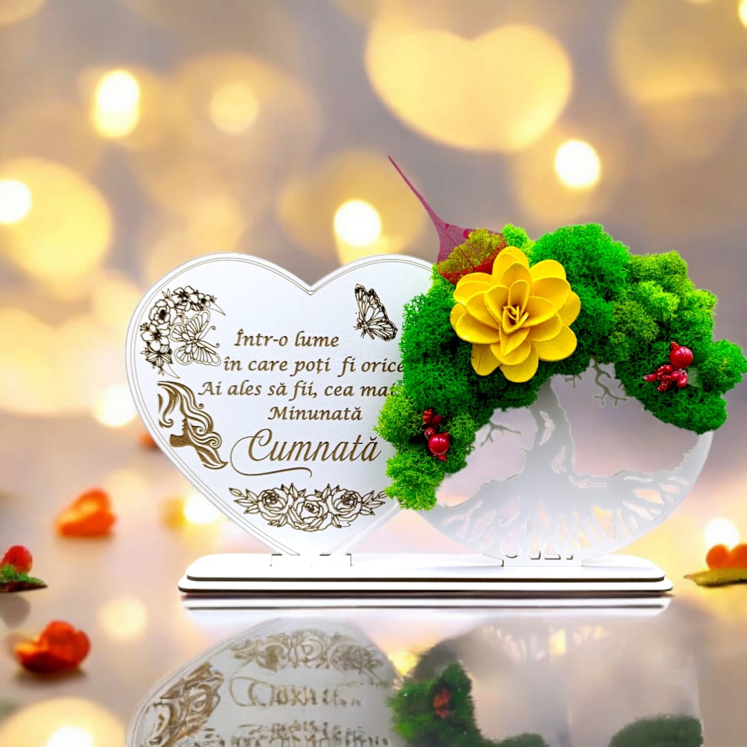 Tablou Inima Copacul vietii decorativ cu suport, personalizat pentru Cumnata "Intr-o lume in care poti fii orice..." , Produs în România de Rustic Wood Decor, dimensiune 30x16cm