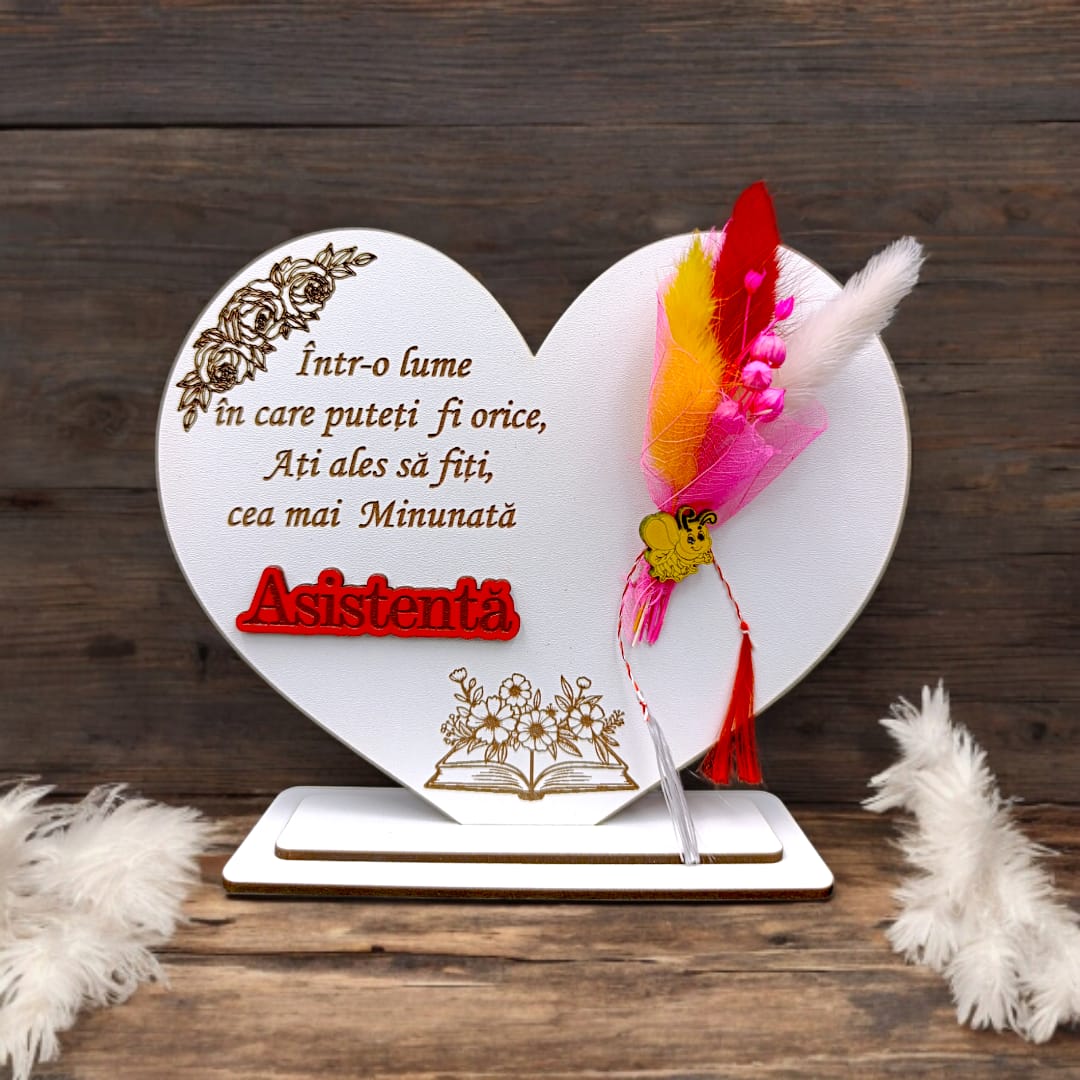 Cadou personalizat Inima cu mesaj standard pentru Asistenta, dimensiune 15cm