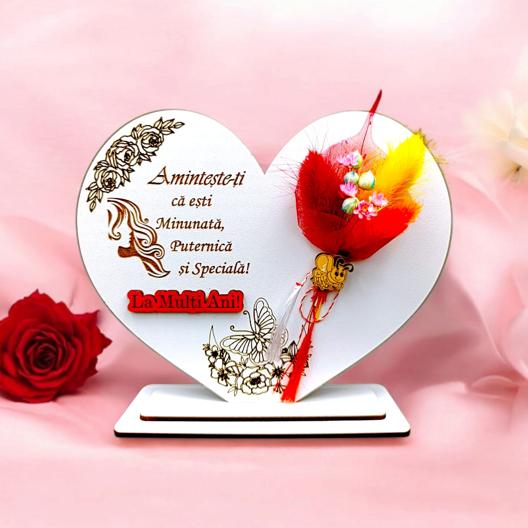 Cadou personalizat Inima cu mesaj standard pentru Ziua Femeii/8Martie, dimensiune 15cm