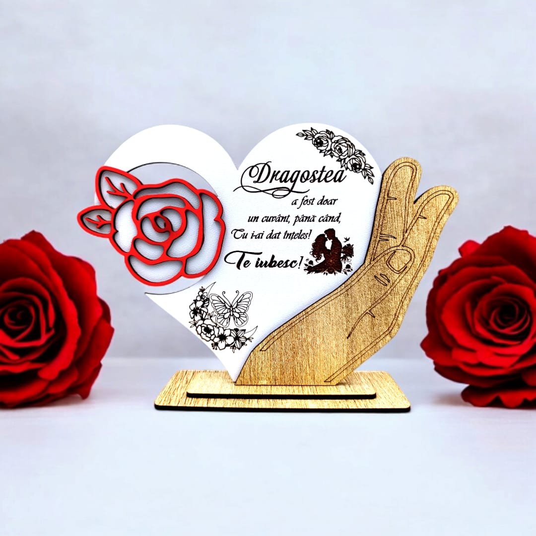 Cadou personalizat, tablou inima in palma cu mesaj standard pentru Sotie/Iubita, 21x15cm